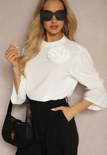 Biała Bluzka z Dodatkiem Bawełny Ozdobiona Kwiatem 3D Merisara