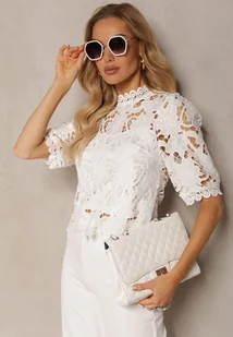 Biała Bluzka ze Stójką z Ażurowej Koronki Nariras