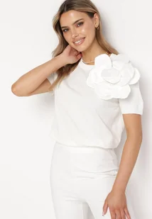 Biała Wiskozowa Bluzka z Aplikacją 3D Kwiatkiem Sallron