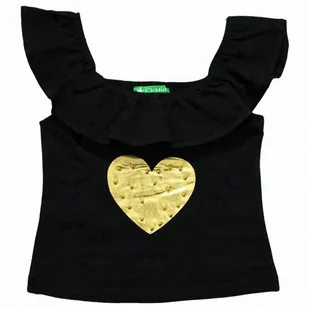 Urocza bluzka z sercem typu hiszpanka (z falbanką wokół dekoltu) w czarnym kolorze z przodu złote serce, ozdobione kuleczkami wykonana z miłej w dotyku baweł...