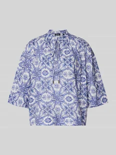 Bluzka damska od JOOP!;Modal-Mix;krój regular fit;Model 'Beyda';Allover-Look;wycięcie w kształcie łezki;wiązanie;Rękaw 3/4;Długość tyłu w rozmiarze 36: 58 cm;Długość rękawów w rozmiarze 36: 32 cm