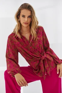 Wzór: deseń inspirowany pięknem tropikalnych kwiatów hibiskusa. Fason: kopertowy dekolt i wiązanie lepiej leżą na kobiecej figurze, niż zwykła koszula. Szyte w Polsce. Skład: 100% wiskoza