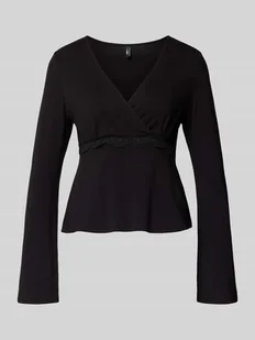 Bluzka z długim rękawem damska Only;Model ‘Sini’;Efekt: Zakładka;Krój: Krój slim fit;Aplikacja: Wyhaftowane logo, koronka;Dekolt: głęboki dekolt w serek;Rękaw: długi;Materiał: Mieszanka wiskozy