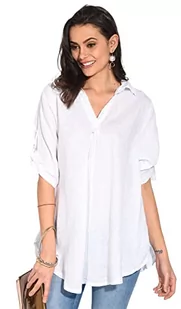 Bonateks damska top 100% lniana tunika Made in Italy, bluzka z dekoltem w serek i długim rękawem, biała, rozmiar: XL, biały, XL