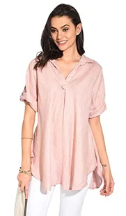 Bonateks damska top 100% lniana tunika Made in Italy, bluzka z dekoltem w serek i długim rękawem, satyna, rozmiar: M, Satyna, M