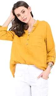 Bonateks damska top 100% lniana tunika wyprodukowana we Włoszech, bluzka z kołnierzem tunezyjskim zapinana na guziki z kieszeniami z przodu, ochra, rozmiar: XL, Ochra, XL