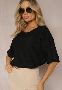 Czarna Bluzka Koronkowa z Krótkim Rękawem Kyrielle