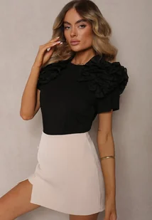 Czarny T-shirt z Bawełny Ozdobiony Bufiastymi Falbankami Kandrra