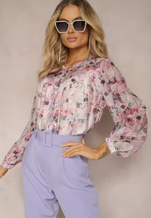Różowa Bluzka z Wiskozy o Luźnych Rękawach w Abstrakcyjny Wzór Merissta