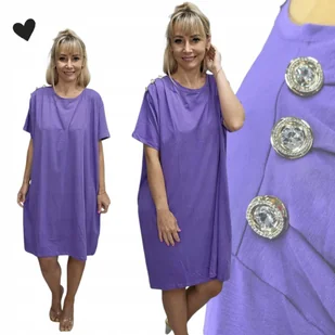 GŁADKA SUKIENKA DIAMENT GUZIKI luźna elegancka tunika fiolet 50 52 5XL 2881