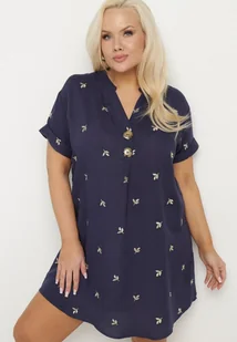 Granatowa Bawełniana Tunika z Ozdobnymi Guzikami i Naszywkami Sovozi