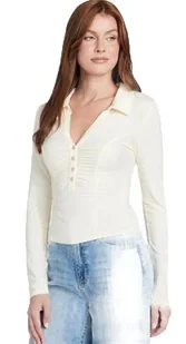 GUESS BLUZKA Z MARSZCZENIAMI I KOŁNIERZYKIEM DOPASOWANA L 2CA
