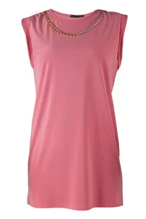 Koralowa, luźna bluzka bez rękawów, z okrągłym dekoltem. Wykonana z lekkiego, miękkiego, miłego w dotyku materiału. Posiada odpinany srebrno-złoty łańcuszek....