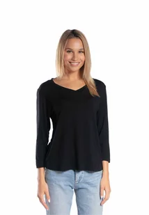 Bluzka o klasycznym prostym fasonie z rękawem o 3/4 długości i dekoltem w szpic. Uszyta z materiału o wysokiej zawartości modalu. 3/4 prosty rękaw swobodny f...