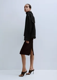 Tkanina bawełniana w stylu jeansowym kowbojskim, Prosty krój, Węzeł przy szyi, Długi rękaw, Kontrastowe szwy, Bez zapięcia, Rozcięcia po bokach, Total look