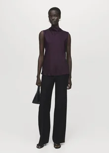 MANGO - Bluzka satynowa z drapowanym dekoltem burgund - M - Kobieta