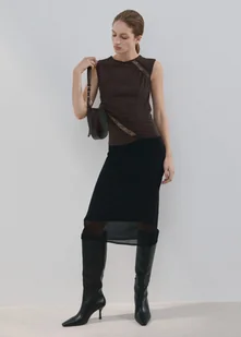MANGO - Dopasowany top z marszczeniami brązowy - XXS - Kobieta
