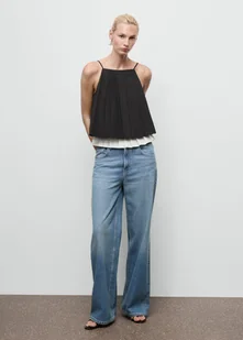 MANGO - Plisowany top z łączonych materiałów czarny - S - Kobieta