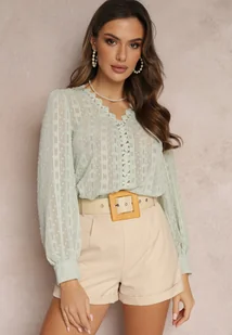 Miętowa Koronkowa Bluzka z Metaliczną Nitką Maliso