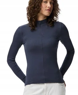 PIECES GRANATOWA BLUZKA Z DŁUGIM RĘKAWEM I STÓJKĄ M XQA