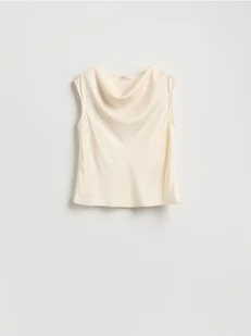 Reserved - Bluzka z drapowanym dekoltem - złamana biel