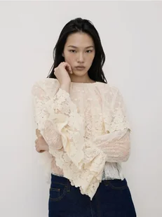 Reserved - Bluzka z falbanami - złamana biel