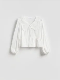 Bluzka o swobodnym kroju, wykonana z bawełnianej tkaniny.