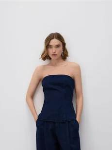 Top o dopasowanym fasonie, wykonany z bawełnianej tkaniny.