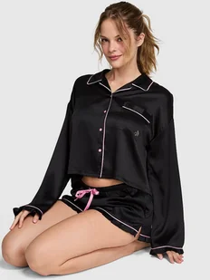 Satynowy komplet piżamowy: bluzka z długim rękawem i szorty
