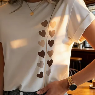 TEMU Damski brązowy top z krótkim rękawem z złotym sercem - swobodna bluzka na wiosnę/leto, swobodna odzież| Tekstura| Top z krótkim rękawem