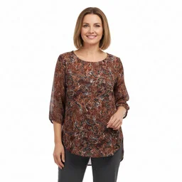 Powabna, bardzo kobieca, elegancka modna tunika szyfonowa z dłuższym tyłem. Zwiewna idealnie tuszuje wszelkie niedoskonałości, doda lekkości każdej kobiecie. Bardzo dobry gatunkowo szyfon plus podszewka wiskozowa sprawią, że tunika jest miła w dotyku i czujemy się w niej swobodnie. Dzięki luźnemu fasonowi i rozcięciach po bokach sprawi, że będziesz wyglądać zjawiskowo i idealnie podkreśli Twoje atuty. Tunika ma dłuższy tył, na bokach rozcięcie, rękaw 3/4 wykończony mankietem, dekolt okrągły.