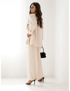 Stylowy garnitur marynarka i spodnie ULLA - beżowy Odkryj niezwykłą elegancję i komfort dzięki stylowemu garniturowi ULLA! Ten wyjątkowy zestaw składa się z dłuższej marynarki zapinanej na guziki oraz poduszek na ramionach, które dodają sylwetce wyrazistego kształtu. Klasyczne spodnie z kieszeniami idealnie łączą wygodę z elegancją, co czyni je doskonałym wyborem na każdą okazję. Garnitur ULLA to idealna baza do wielu stylizacji! Możesz zestawić go z klasyczną białą bluzką i szpilkami na wieczorne wyjście, lub z modnym t-shirtem i sneakersami na co dzień. Dodaj do całości elegancki płaszcz i biżuterię, a stworzysz look, który przyciągnie spojrzenia. Niezależnie od sytuacji, ten garnitur sprawi, że poczujesz się pewnie i stylowo.