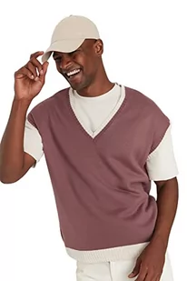 Trendyol Męska kamizelka z dekoltem w serek, zwykła, luźna róża, M, Pudrowy róż, M