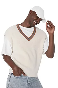 Trendyol Męska męska kamizelka oversize z dekoltem w serek z dzianiny, BEŻOWY, XL