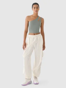 KOLEKCJA LIMITOWANA 4F x ANNA LEWANDOWSKA Spodnie parachute damskie idealnie sprawdzą się jako element zarówno lifestylowych, jak i sportowych stylizacji na co dzień. Posiadają oversizowy krój, który luźno układa się na sylwetce i zapewnia swobodę oraz nogawki z możliwością dopasowania przy pomocy tunelowych ściągaczy ze stoperami. Spodnie na co dzień damskie posiadają średnią gramaturę materiału 140 gsm, która sprawia, że są one miękkie oraz bardziej przewiewne. Spodnie casualowe dla kobiety są wykonane z bawełny, dzięki czemu są miękkie, trwałe i przyjemne w dotyku. Spodnie nie posiadają podszycia, dzięki czemu są lżejsze i odpowiednie na cieplejsze dni.