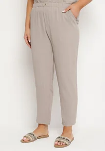 Beżowe Spodnie o Prostym Kroju z Gumką w Talii Filavia