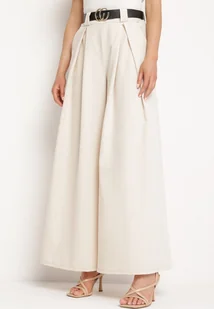 Beżowe Szerokie Spodnie z Wysokim Stanem i Paskiem Serenda