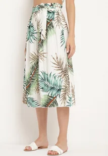 Biało-Zielone Spodnie Plisowane Typu Palazzo z Gumką w Pasie o Długości 3/4 Hiefia