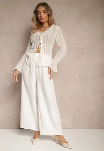 Białe Spodnie Typu Palazzo High Waist o Szerokim Kroju Arathira