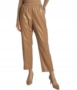 BOSS ELEGANCKIE SPODNIE Z EFEKTEM SKÓRY W KOLORZE BEŻOWYM 34 J9A