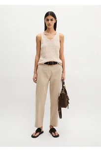 Spodnie chino to prawdziwie uniwersalny, klasyczny i modny trend, który sprawdza się zarówno zimą, jak i latem. Niezależnie od tego, czy chodzi o swobodny codzienny wygląd, czy elegancki do biura - przy odpowiedniej stylizacji chinosy nadają się na każdą okazję. Model Rimka o zwężanym kroju jest wykonany z elastycznego twillu z mieszanki bawełny organicznej. Spodnie mają szeroki, czysty pas ze szlufkami, ukośne kieszenie z przodu i wąską kieszeń z lamówką z tyłu. Krój jest luźny ze zwężaną nogawką i regularnym wzrostem.