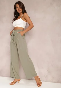Spodnie Phiorephis z długimi i szerokimi nogawkami. Talia typu regular waist. W pasie gumka podtrzymująca materiał. Ze wsuwanymi kieszeniami i dodatkowym paskiem z tego samego materiału. Wykonane z wiskozowej tkaniny o gładkim wzorze.