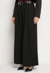Czarne Garniturowe Spodnie z Wiskozą o Szerokim Kroju z Paskiem Ravilis