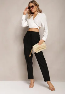 Czarne Proste Spodnie Bawełniane z Gumką w Pasie Xisela