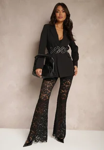 Czarne Spodnie Koronkowe o Fasonie Dzwonów Vortiga