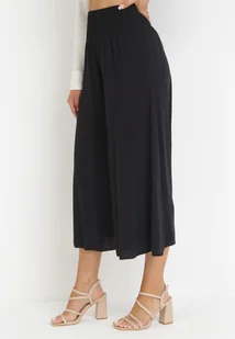 Czarne Szerokie Spodnie z Wiskozy o Długości 7/8 Inule
