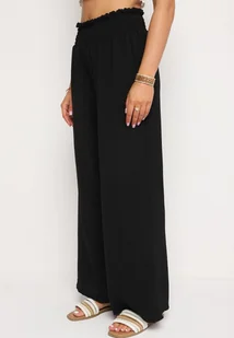 Czarne Szerokie Spodnie z Wysokim Stanem Wykończone Gumką w Pasie Risinassa