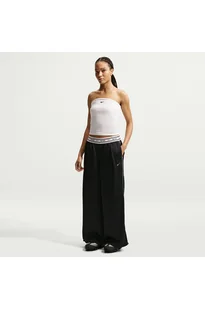 Damskie luźne spodnie satynowe ze średnim stanem Nike - Czerń