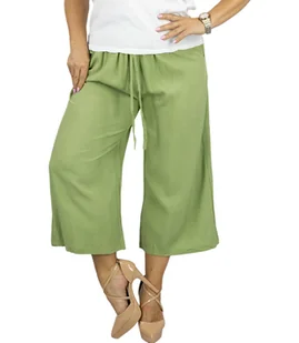 Szerokie damskie spodnie Luźny krój zapewniający swobodę ruchów i wygodę noszenia Lekka, przewiewna tkanina Elastyczny pas z gumką Z przodu 2 kieszenie, z tyłu gładkie Wysoki stan Uniwersalny design Dostępne w kilku pięknych kolorach Wygodne i stylowe spodnie kuloty idealne na ciepłe dni! Uszyte z przewiewnej, lekkiej bawełny, zapewniają pełen komfort i swobodę ruchów. Elastyczna gumka w pasie z wiązaniem świetnie dopasowuje się do sylwetki, a modne szerokie nogawki dodają im wyjątkowego charakteru. Modelka ma 160 cm wzrostu i nosi rozmiar 38