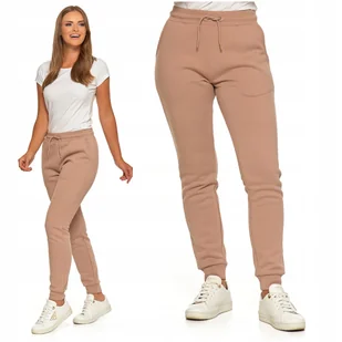 Dresowe Spodnie Damskie Ocieplane Joggery Gładkie Beżowe Klasyczne Moraj S